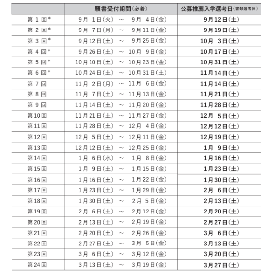 | 3 | 最終学歴が高等学校・ 高等専修学校卒業の者。 大学・短期大学・専門学校在学中で、 卒業見込みの出ない者。 | 高等学校・高等専修学校の調査書のみ (発行後6ヶ月以内) |